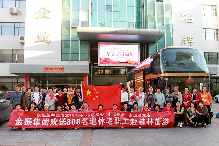 據(jù)悉,金猴集團(tuán)自成立以來,始終秉承關(guān)愛老職工、人走茶不涼的傳統(tǒng),退休職工曾為集團(tuán)發(fā)展做出過貢獻(xiàn),在職時集團(tuán)傾情關(guān)懷,退休以后集團(tuán)也一如既往,每年廠慶都發(fā)放紀(jì)念品,不定期組織聚會和外出旅游,省內(nèi)景區(qū)幾乎都走遍了,近年來還組織去外地和國外旅游,如大連、長江三峽、韓國等地,讓退休老職工始終感受到金猴集團(tuán)大家庭的真情和溫暖。