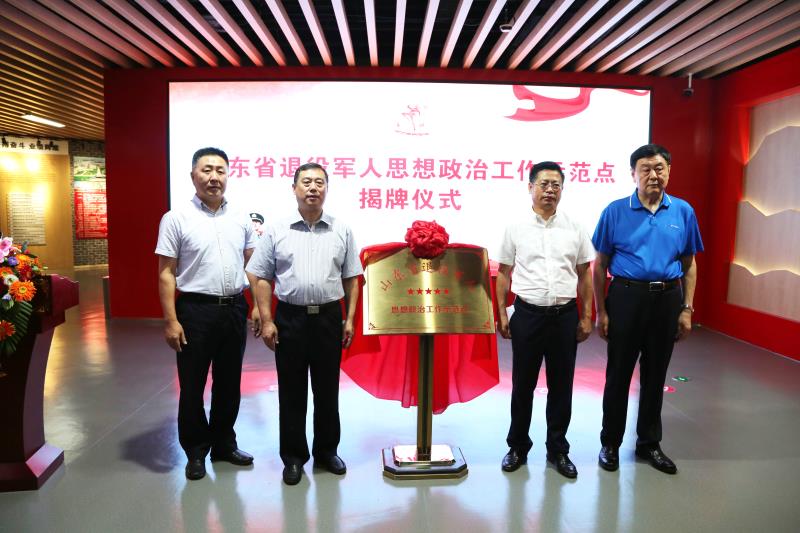 9月2日,“山東省退役軍人思想政治工作示范點”揭牌儀式在金猴集團展陳館舉行,市政府副市長、市公安局局長葉立耘,市退役軍人事務局局長苑圣慧,高區(qū)黨工委委員、管委會副主任趙林,集團公司黨委書記、董事長、總經(jīng)理柳富林參加活動。
