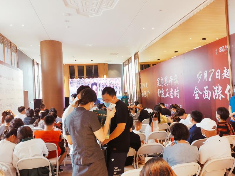 “鈴鈴鈴……”,9月6日凌晨3點50分,金猴觀湖閱山項目案場經(jīng)理郝金鑫接到夜班保安電話:“郝經(jīng)理,現(xiàn)場已經(jīng)有不少客戶在排隊了,您趕緊安排人早點過來吧”。得到消息后,郝經(jīng)理立即通知案場全體人員提前3個小時進入了“備戰(zhàn)”狀態(tài)。雖然對閱山區(qū)開盤當(dāng)日會有客戶提早前來排隊領(lǐng)號有所預(yù)判,也提前在營銷中心門前準(zhǔn)備了椅子、太陽傘、水、月餅、水果等物品,但客戶這么急切,提前這么早前來排隊領(lǐng)號還是出乎了大家的意料。