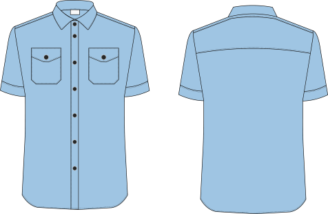 短袖施工服上衣不使用拉鏈,前門襟處由鈕扣固定。上衣胸前直插口袋兩個,領(lǐng)子為翻領(lǐng)結(jié)構(gòu),袖口、下擺做包邊處理。