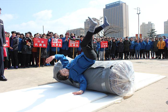在“財源滾滾”游戲中,有的身輕如燕順利翻滾,有的三番五次難逾障礙,各種動作和畫面輪番上演,滾出了歡聲,滾出了笑語,也滾出了好運連連。在點球大賽上,既有勢不可擋的洪荒之力,也有輕飄曼舞的溫柔一腳,還有出其不意的迂回戰(zhàn)術(shù),不僅展示了發(fā)球隊員的速度和技巧,更是檢驗了守門員的能力和水平。整個活動持續(xù)了近兩個小時,最終整飾車間、行政部門、制鞋四車間摘得財源滾滾項目的前三名,裁料車間、中試車間、制鞋一車間榮獲點球大賽項目前三名。